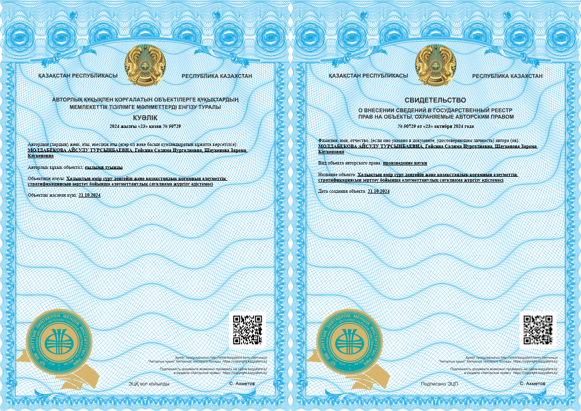 Финансирующая организация: Министерство науки и высшего образования Республики Казахстан