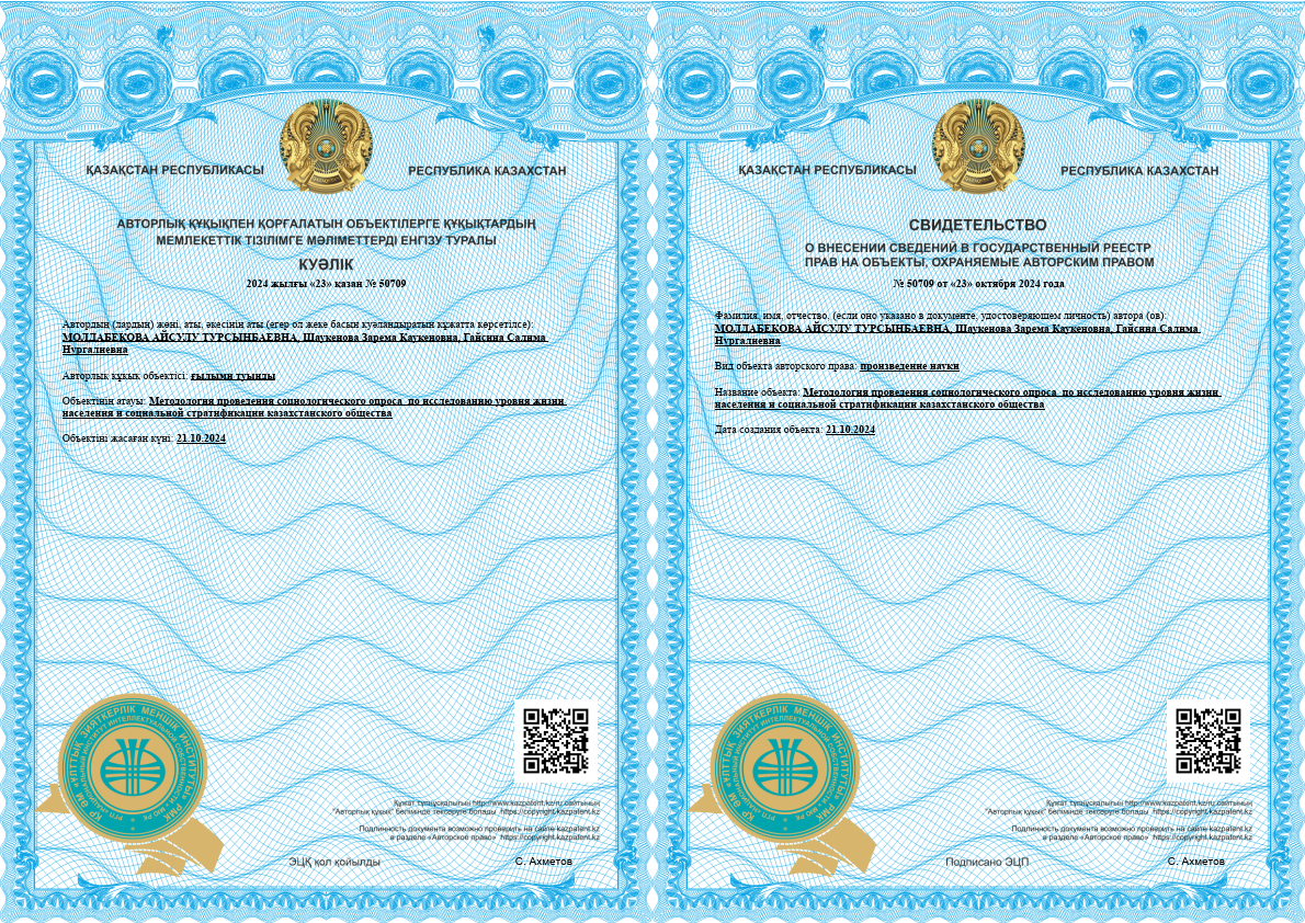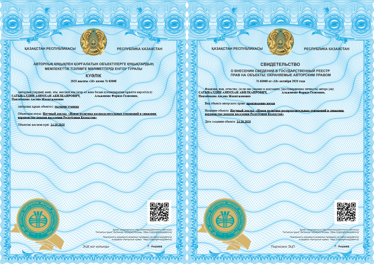 Научный руководитель: Доктор экономических наук, профессор Сатыбалдин Азимхан Абилакирович